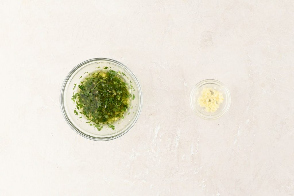 En un bowl para mezclar, combiná 2 cucharadas de jugo de limón, 1 cucharada de aceite de oliva, el cilantro, 1 cucharadita de ralladura de limón, la mitad del ajo (reservá el restante para los porotos negros), ¼ cucharadita de sal y una pizca de pimienta. Mezclá y reservá.