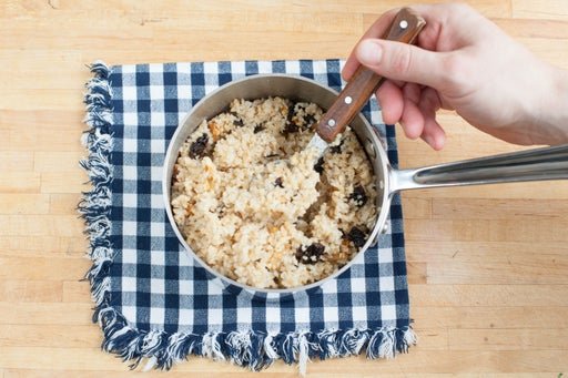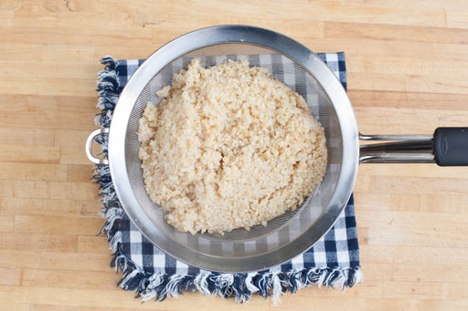 • Una vez que la olla pequeña de agua esté hirviendo, agregá el burgol. Cociná a fuego lento durante 14 a 16 minutos o hasta que esté tierno. Escurrí y volvé a la olla.