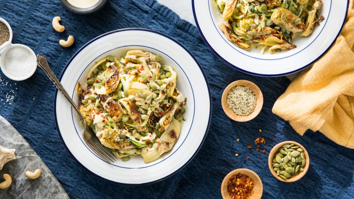 Nov 12 2020 Desactivado Filete de Coliflor con Tahini Por HolaVeggie con Skordalia de Lentejas Rojas y Chauchas Carbonizadas