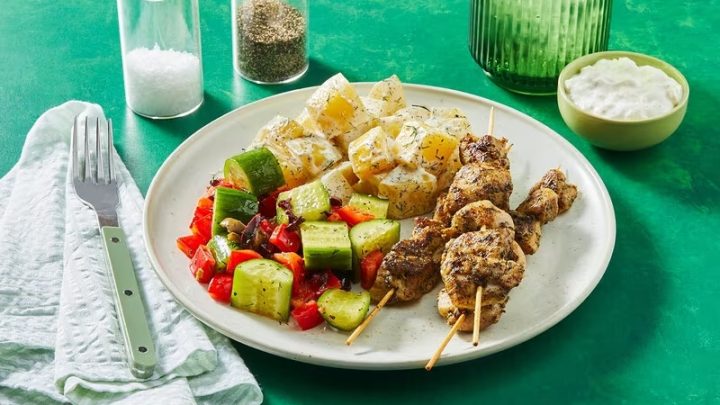 Dic 21 2024 Desactivado Picnic Griego: Brochettes de Pollo Vegetal Por HolaVeggie con Aceitunas y Ensalada Griega – Sin Horno