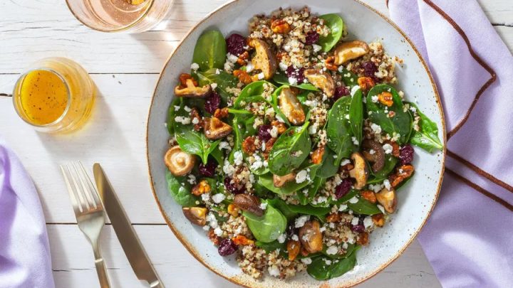 Nov 29 2024 Desactivado Bowl de Hongos y Quinoa • 25 gr de proteína • Por HolaVeggie con Nueces y Arándanos