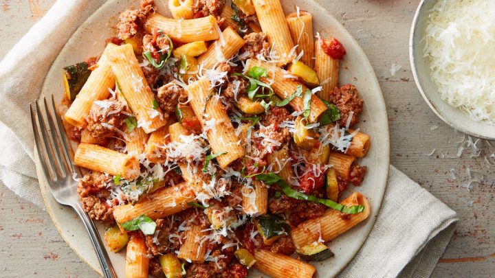 Sep 26 2024 Desactivado Bolognesa de Carne Vegetal • 35 gr de proteína • Por HolaVeggie con Rigatoni y Zuquini