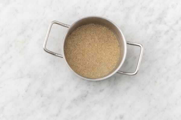 Lavá y secá los vegetales. Precalentá el horno a 200 grados. Poné agua en una olla a hervir, agregá el arroz y cocinalo hasta que esté tierno, unos 20-25 minutos, y colalo.
