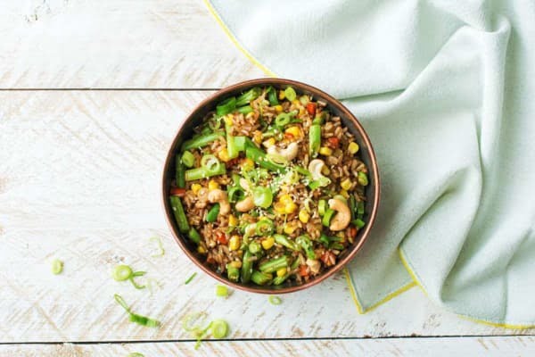 La combinación perfecta de arroz integral, frutos secos y verduras, una comida que desborda de energía. Llena de sabor y aromas gracias a la salsa de soja, jengibre y ajo. ¿Necesitás energía? Te tenemos cubierto.